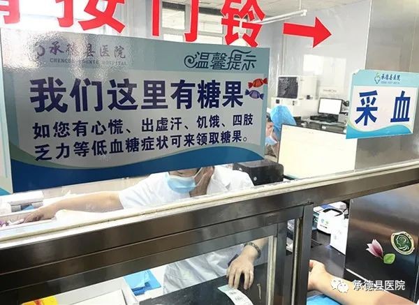 据了解,为保证检验质量,血糖、血脂等多项检验项目均需要空腹采血,一些体弱病人在经过较长时间空腹后,容易因低血糖发生,甚至晕倒。为此,检验科专门准备了糖果、白糖及一次性纸杯,并设立温馨提示牌。此项服务自8月份开展以来,共为15人提供了方便。